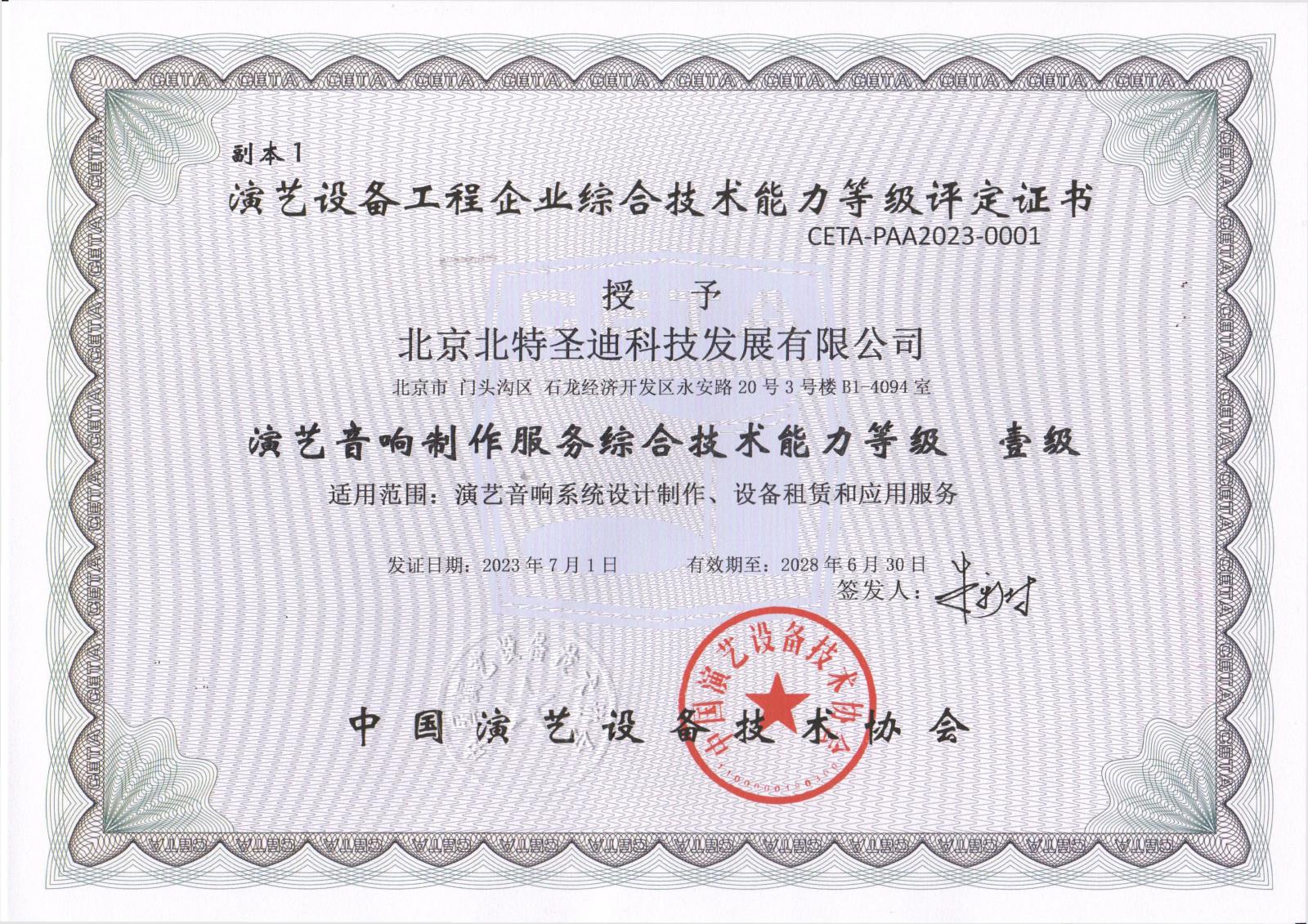 演藝設(shè)備工程企業(yè)演藝設(shè)備總綜合制作服務(wù)綜合技術(shù)能力等級壹級
