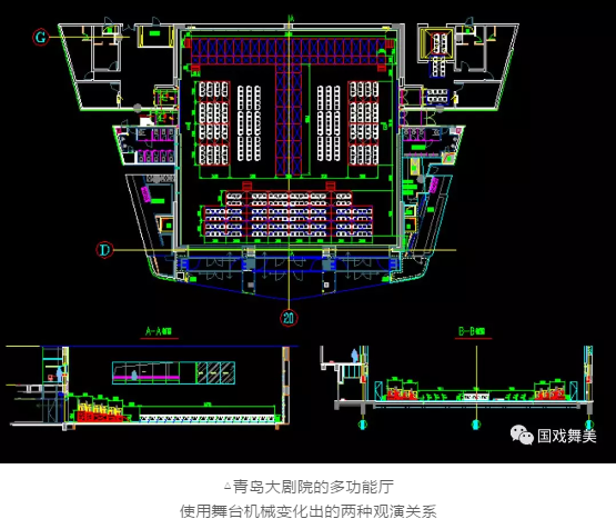 青島大劇院的多功能廳則采用了固定的升降臺(tái),通過(guò)在升降臺(tái)上設(shè)置觀眾席的座椅數(shù)量來(lái)實(shí)現(xiàn)演區(qū)的變化。 除了劇場(chǎng)的多功能廳以外,各大電視臺(tái)的廣電中心有時(shí)存在需要考慮拍攝角度的問(wèn)題,也會(huì)將舞臺(tái)區(qū)、觀眾區(qū)融合在一起,因此也呈現(xiàn)出各種各樣的多功能式舞臺(tái)空間。