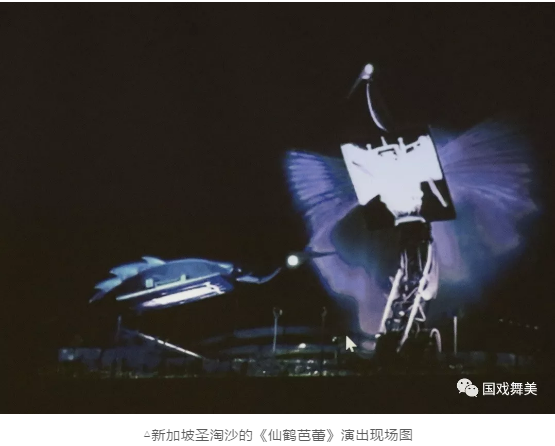 在新加坡圣淘沙的《仙鶴芭蕾》中,由機(jī)械裝置及l(fā)ed屏幕構(gòu)成的巨大仙鶴在空中翩翩起舞,配合燈光、視頻、水效表現(xiàn)其談情說(shuō)愛(ài)的浪漫場(chǎng)景。根據(jù)水壓的不同,水效產(chǎn)生的變化弧線象征性地表現(xiàn)出了仙鶴翅膀的擺動(dòng),同時(shí)又避免了機(jī)械式翅膀帶來(lái)的笨重感。