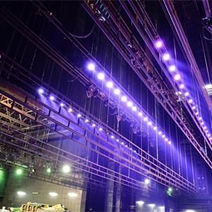 燈架(桿體)包含若干個U型燈具保護裝置,與其他鋼管連接作為舞臺燈光設備支撐結構,它們位于燈光吊桿吊點下方。