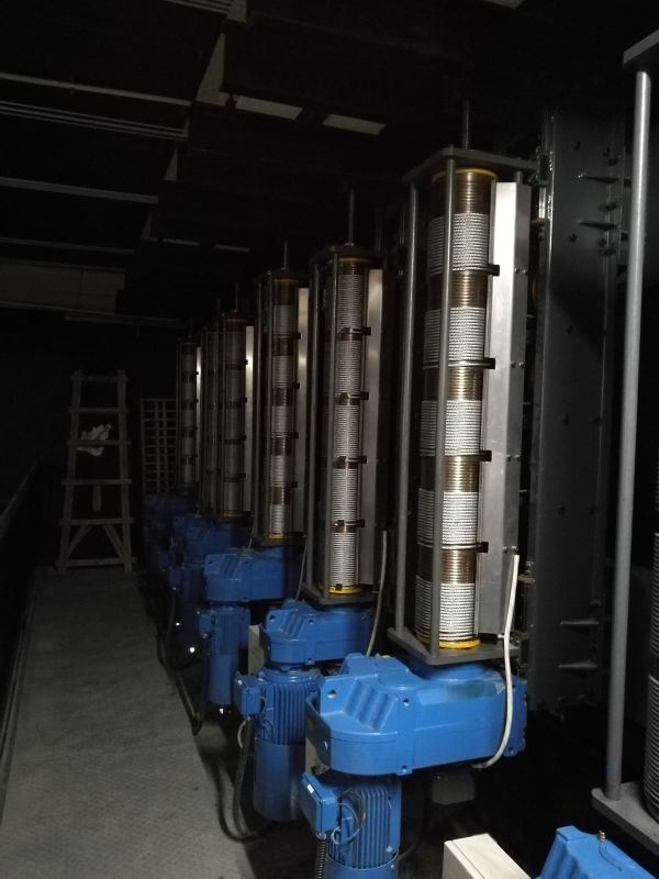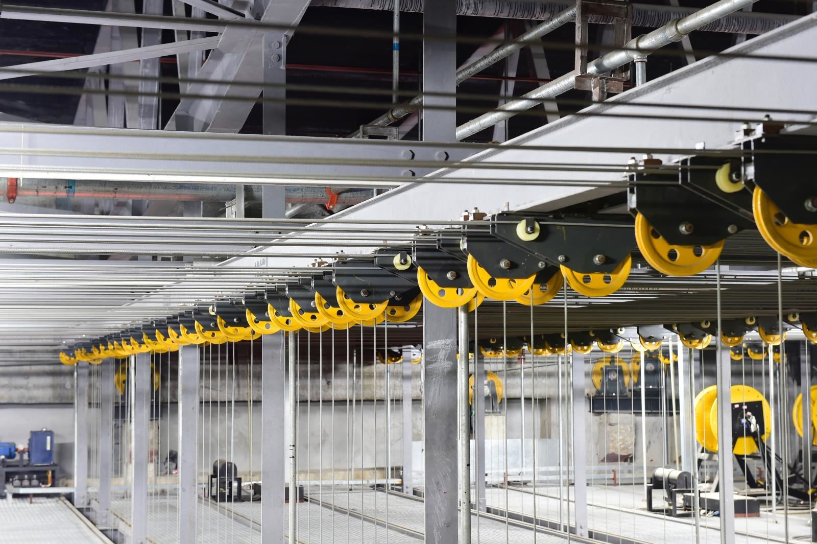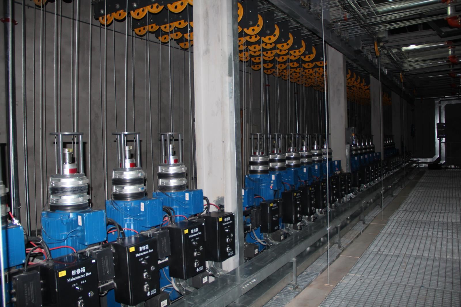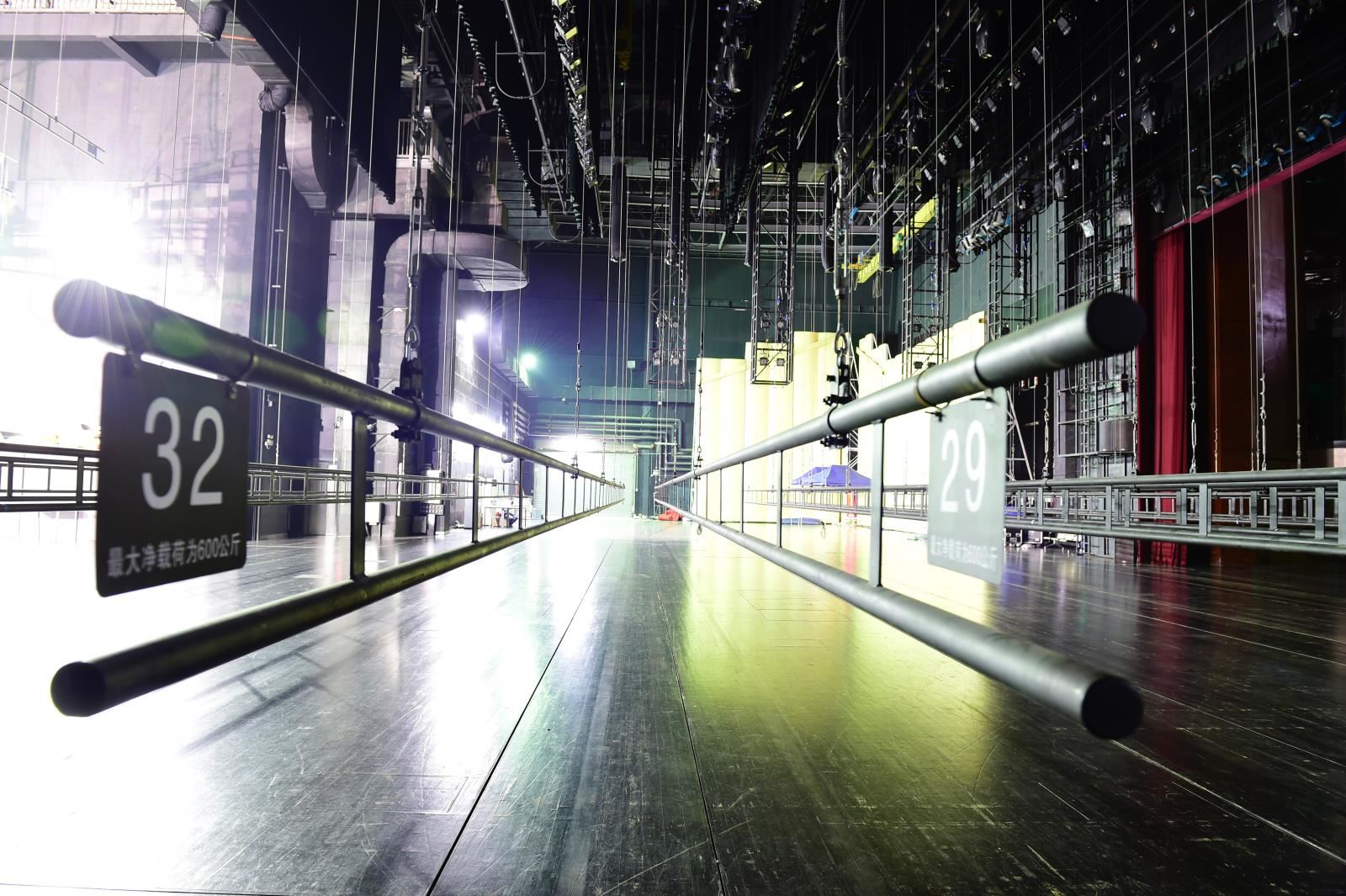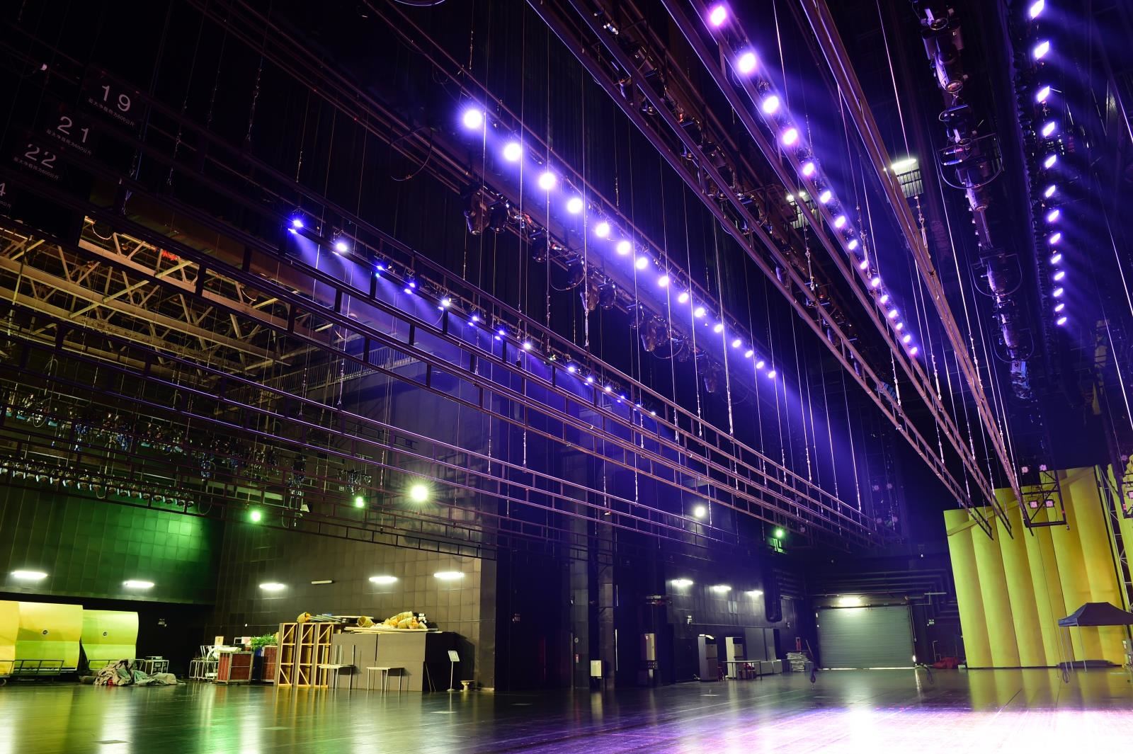 設置于主舞臺或其他舞臺區(qū)域上部、可調速的電動吊桿,用于提升布景、各種幕布等,參加演出活動;