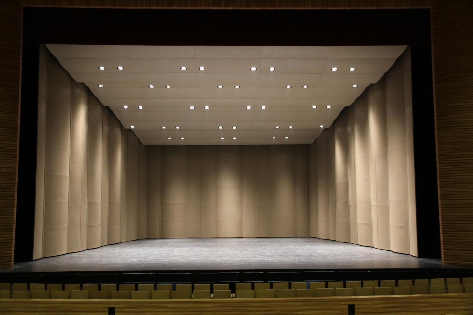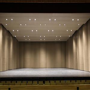 5. 頂板上設(shè)置演出照明燈具,并設(shè)置收線裝置及燈光插座。燈具一般低噪音冷光源,距舞臺面1m處平均照度不低于500Lux,滿足演奏人員在演奏時的需要。