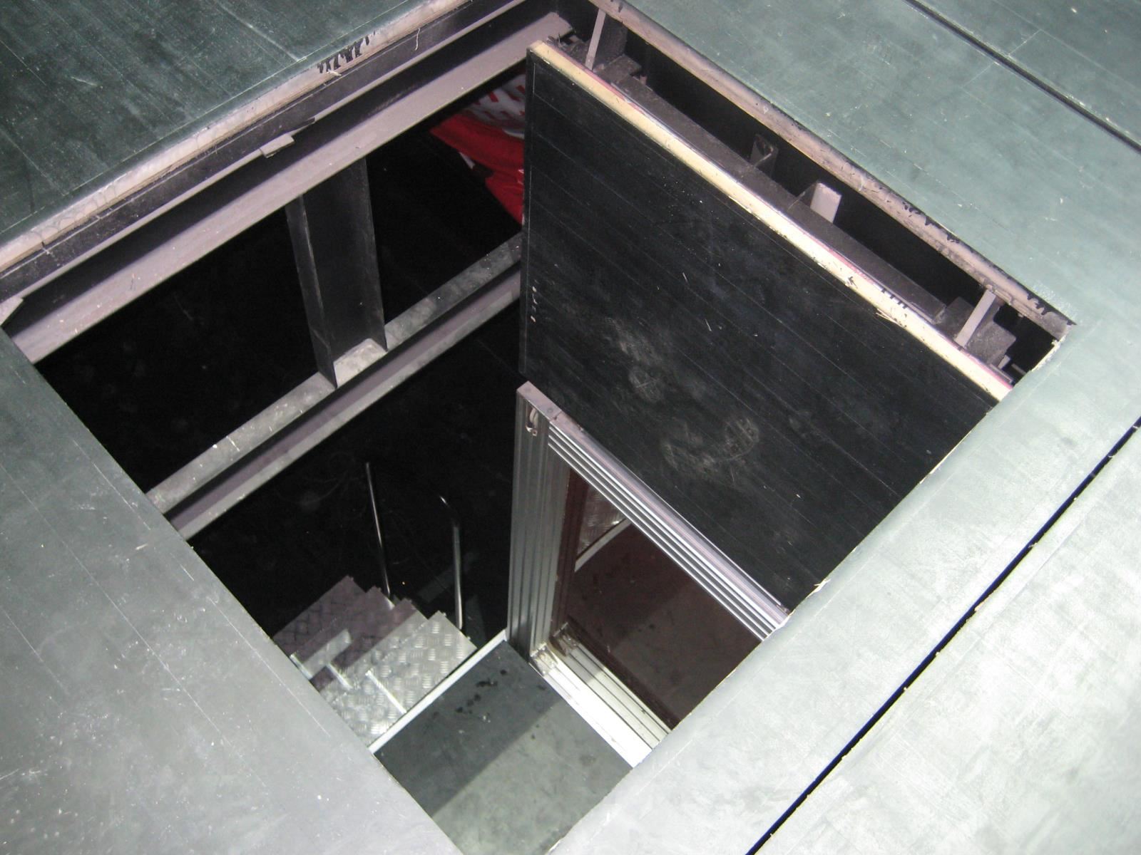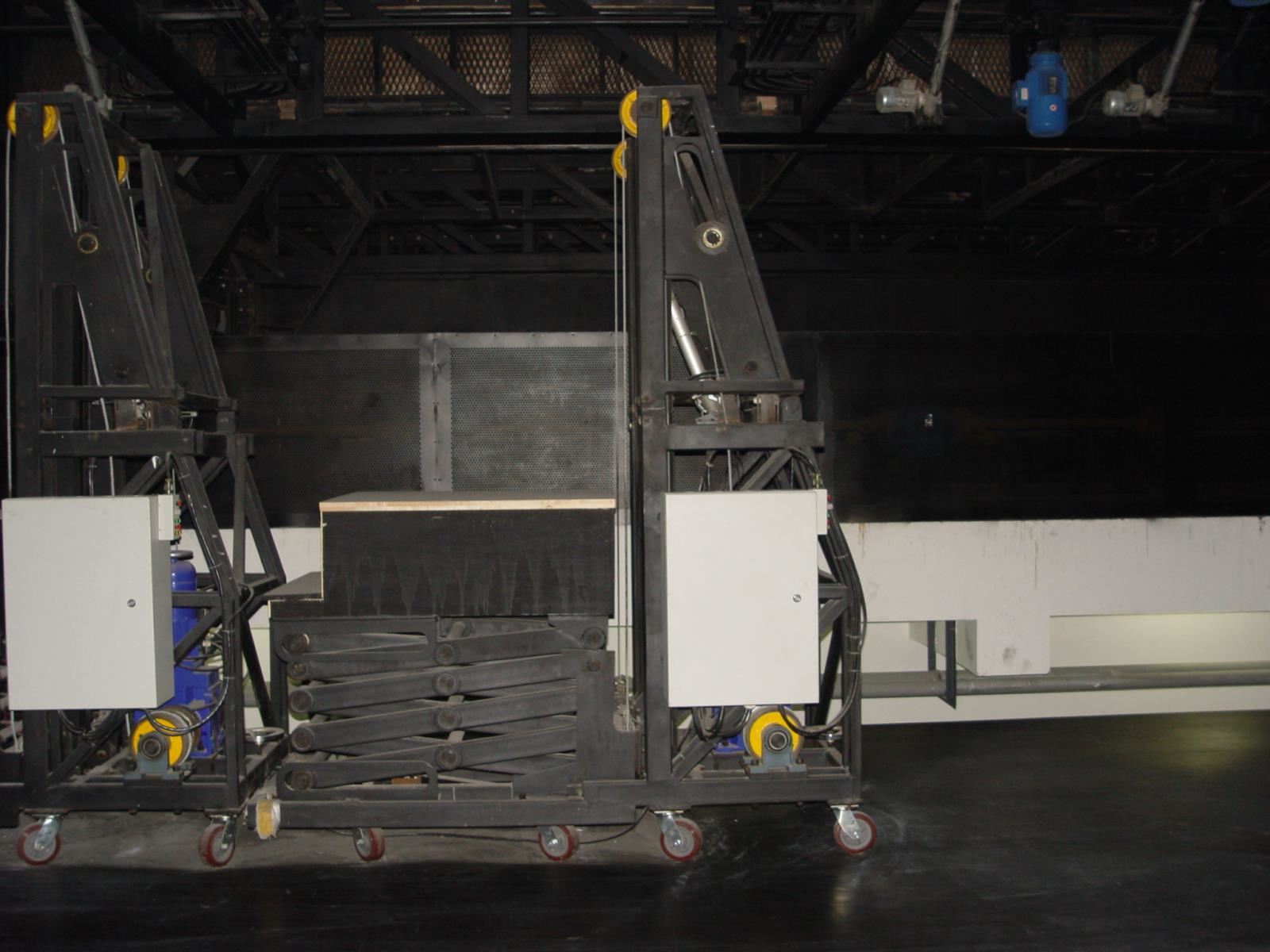 是一個(gè)可移動(dòng)的舞臺(tái)機(jī)械設(shè)備,用于雙層升降臺(tái)的下層臺(tái)板上。