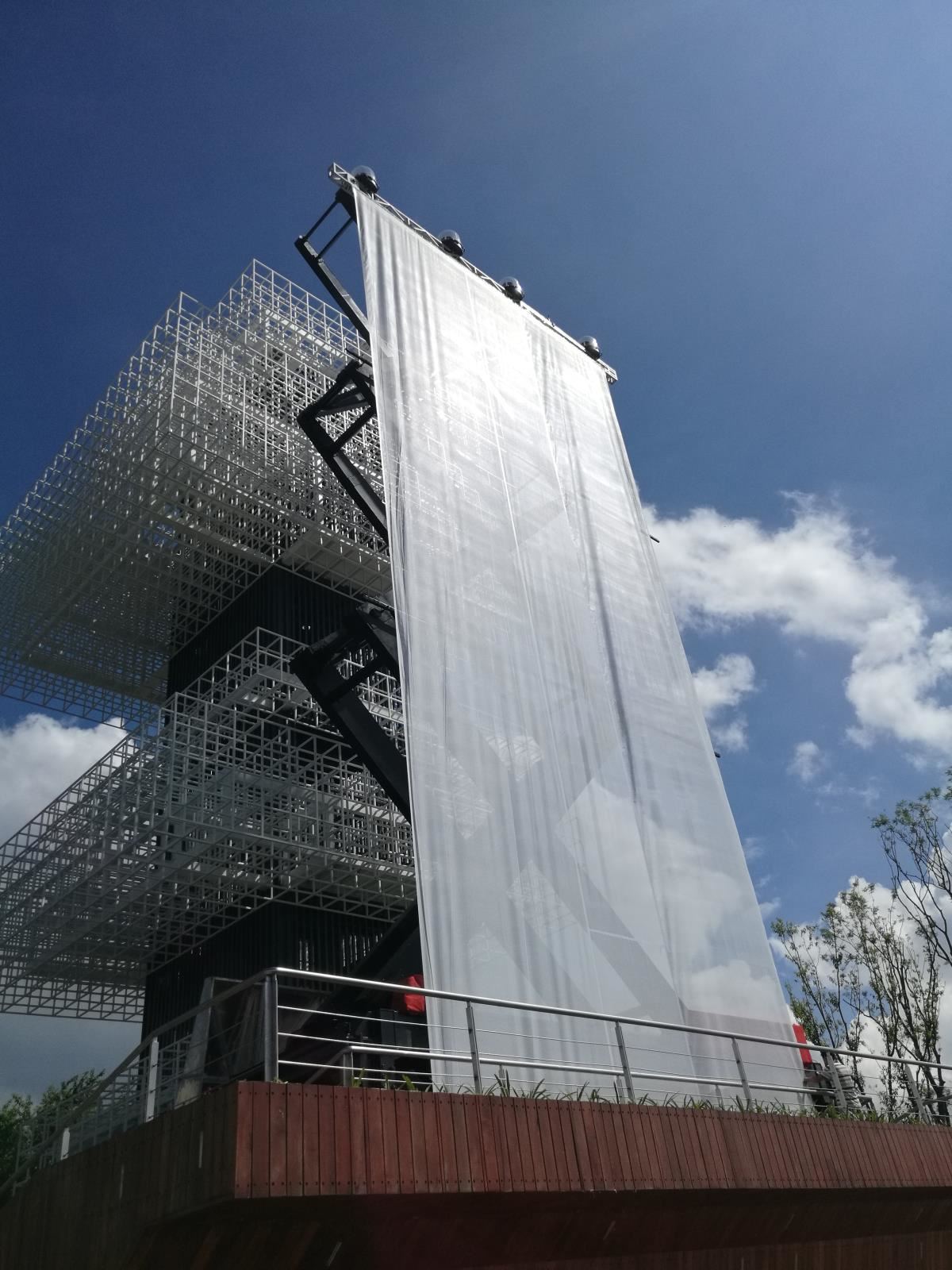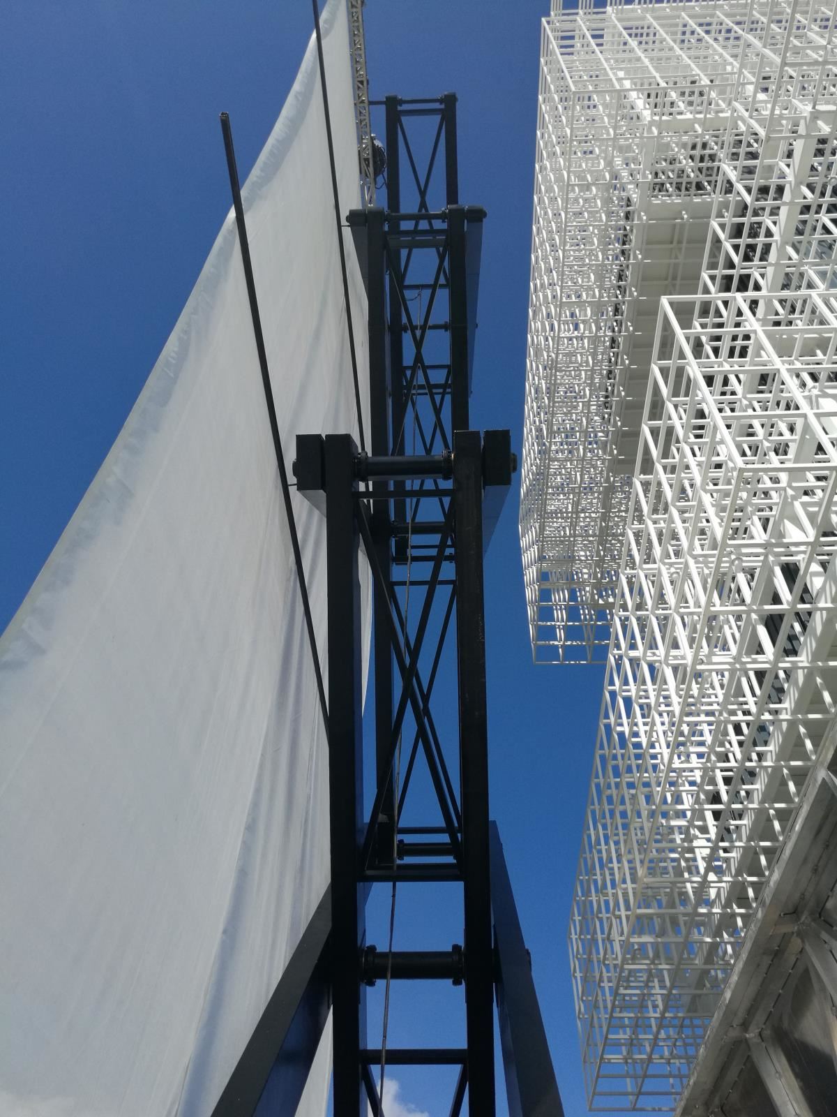 高難度淺基坑大行程無(wú)導(dǎo)向大型戶外升降巨型投影框架系統(tǒng)