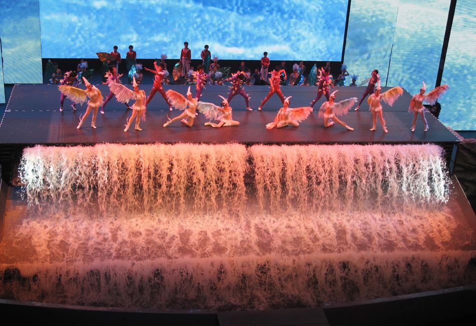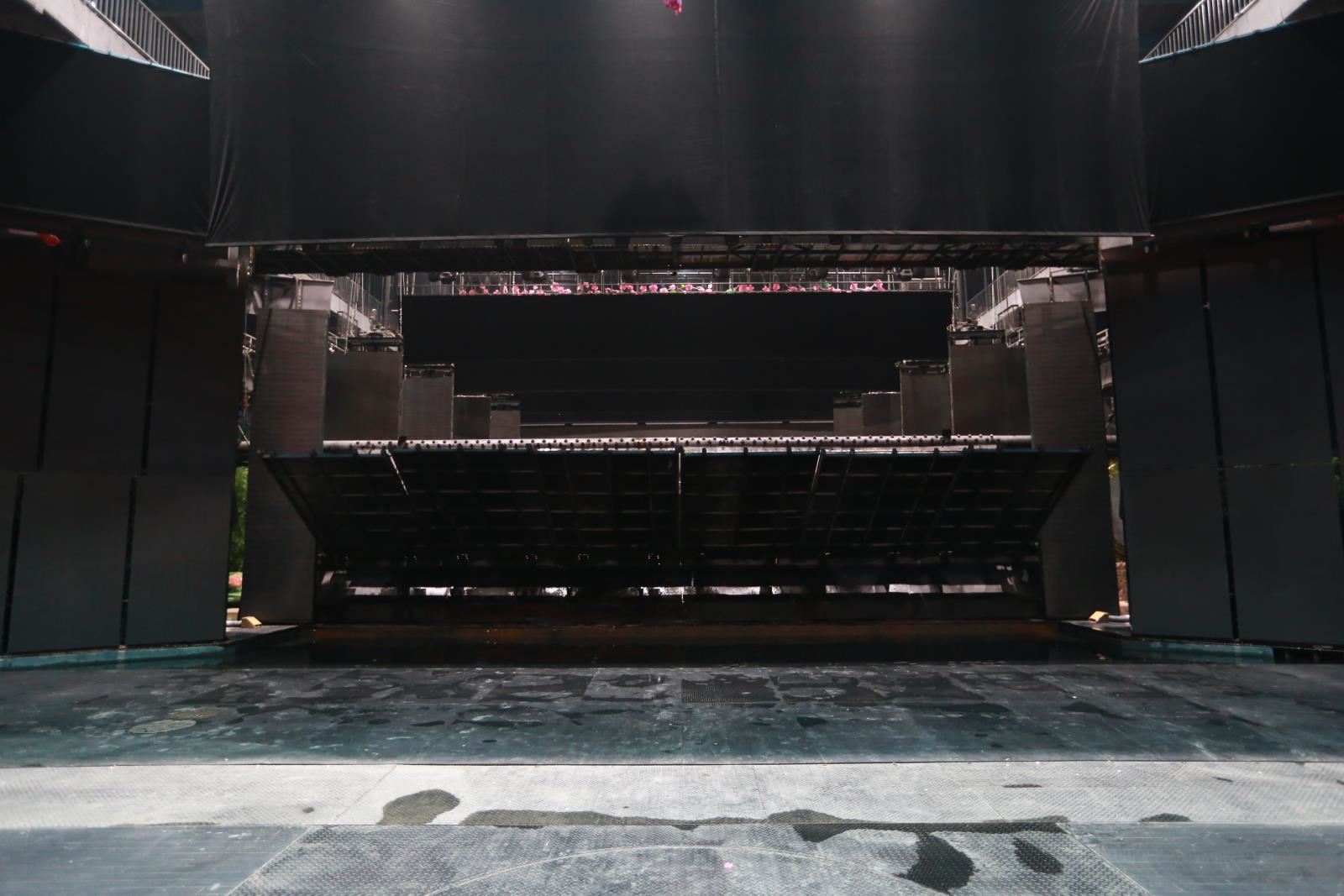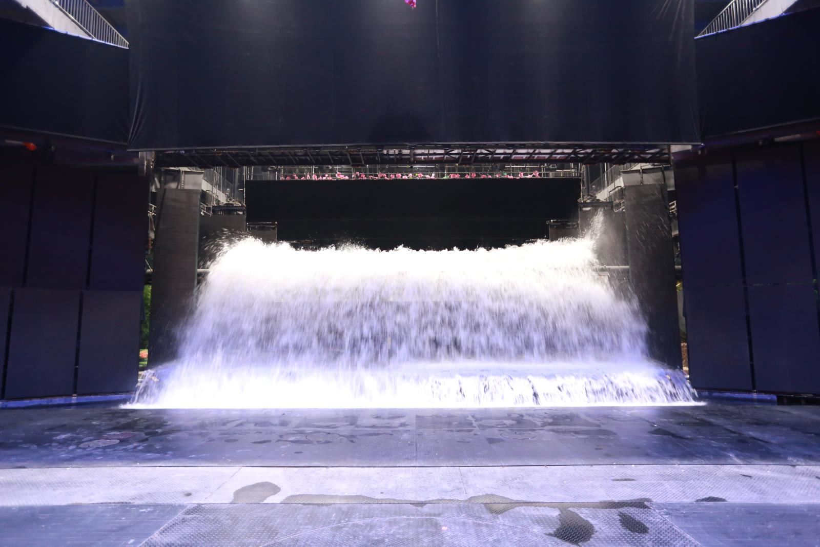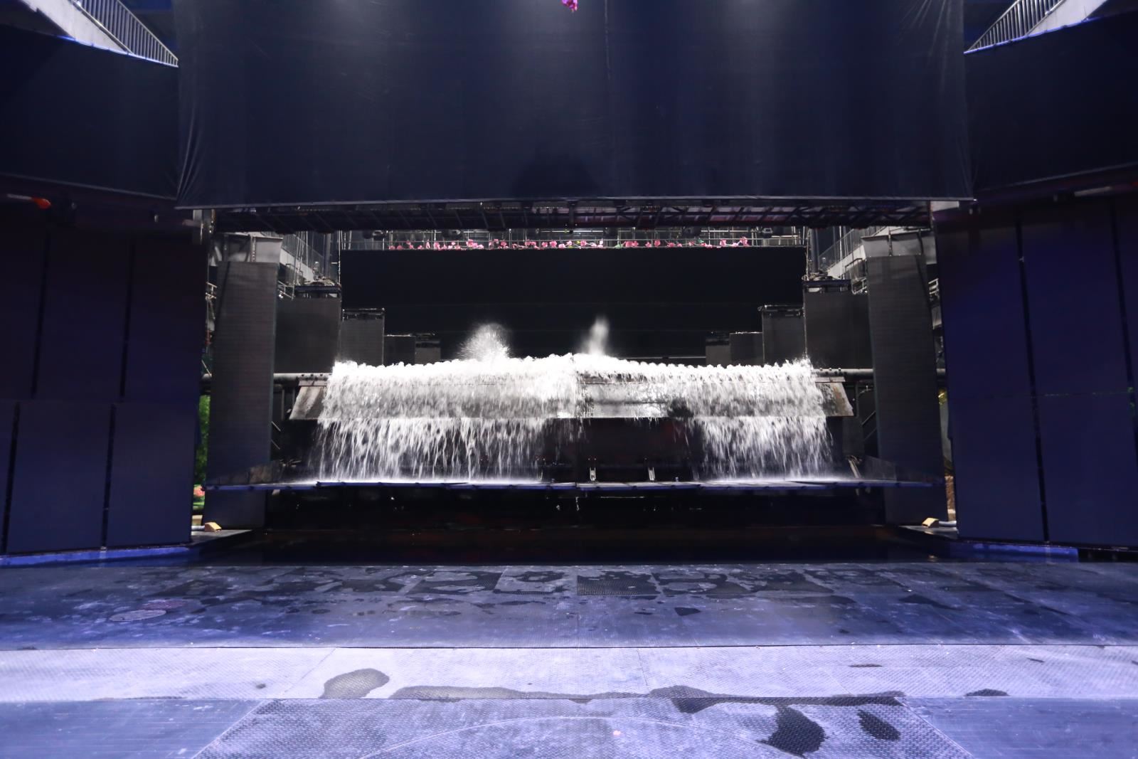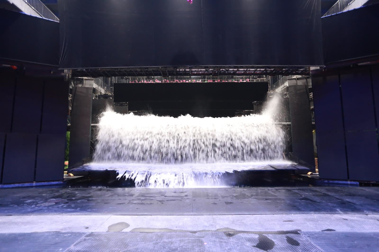 洪水車臺(tái)與洪水特效一般應(yīng)用于室內(nèi)秀場(chǎng)。其原始位置位于側(cè)舞臺(tái),可以是在一側(cè)側(cè)舞臺(tái)(在側(cè)舞臺(tái)空間足夠大時(shí)),也可以是各一塊車臺(tái)(半車臺(tái))分別位于兩側(cè)側(cè)舞臺(tái)。使用時(shí)利用車臺(tái)功能將洪水系統(tǒng)(效果)運(yùn)送到主舞臺(tái)區(qū)域。