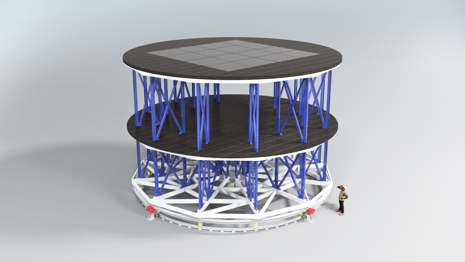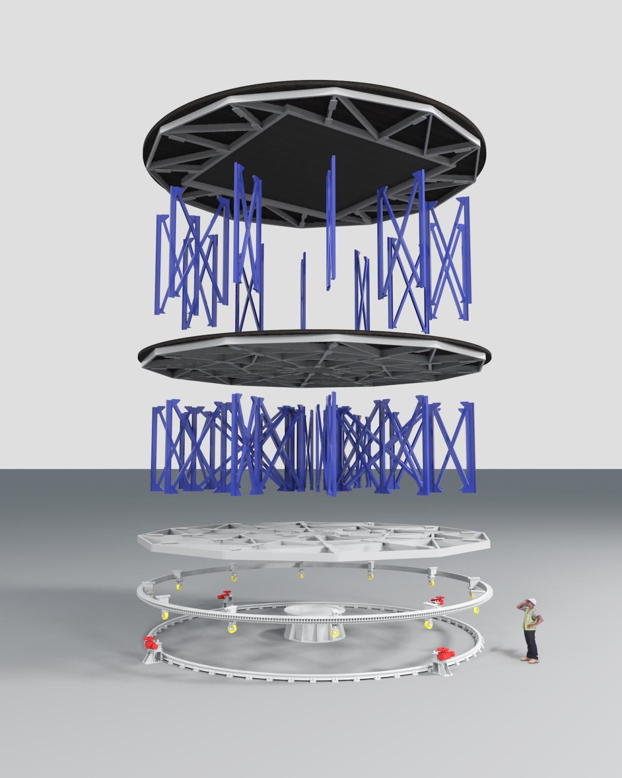 轉(zhuǎn)臺一般設(shè)置4套驅(qū)動系統(tǒng),使轉(zhuǎn)臺的結(jié)構(gòu)受力更均勻,并確保系統(tǒng)運行的可靠性。