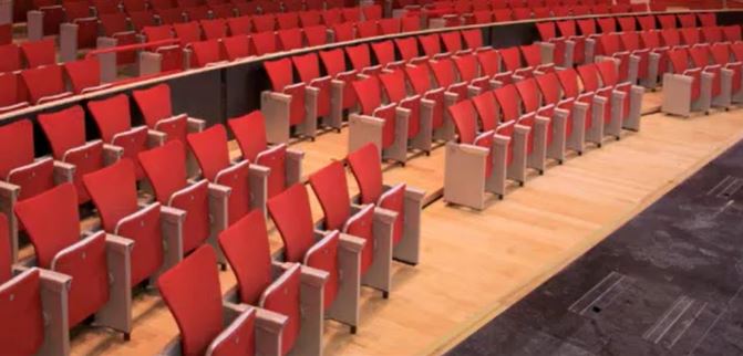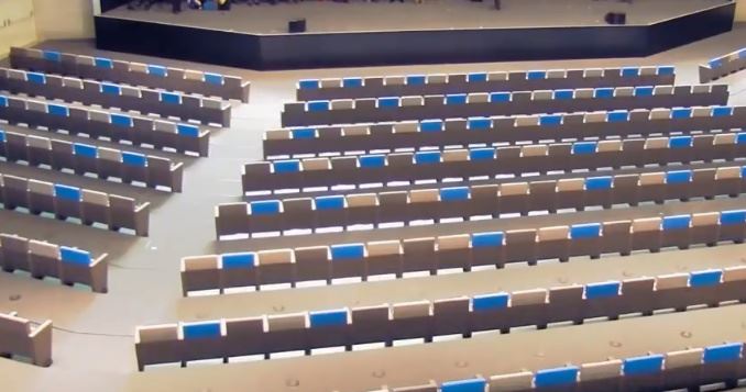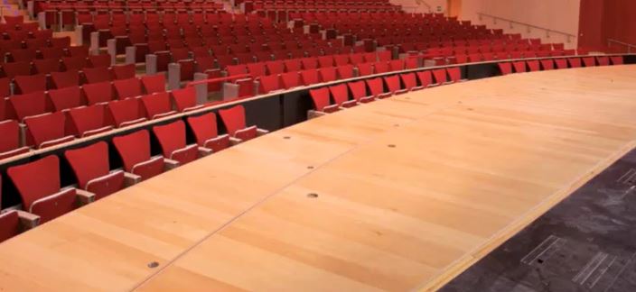 形成平面大廳——前區(qū)座椅或全部座椅收起,使觀眾廳形成局部或整體平面,可用于產(chǎn)品發(fā)布、展覽展示、宴會(huì)、晚會(huì)、小型體育賽事等。